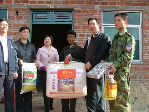 2006年12月25日,集團(tuán)匯源珠寶有限公司干部職工與團(tuán)市委領(lǐng)導(dǎo)來(lái)到東源縣燈塔鎮(zhèn)梨園村和紫金縣附城鎮(zhèn)上莊村,慰問(wèn)這兩個(gè)村的全倒戶,給這里的22戶全倒戶每戶送上500至1000元的慰問(wèn)金、床上用品及生活用品等慰問(wèn)品,為我市災(zāi)區(qū)的全倒戶送上自己最美好的祝愿!